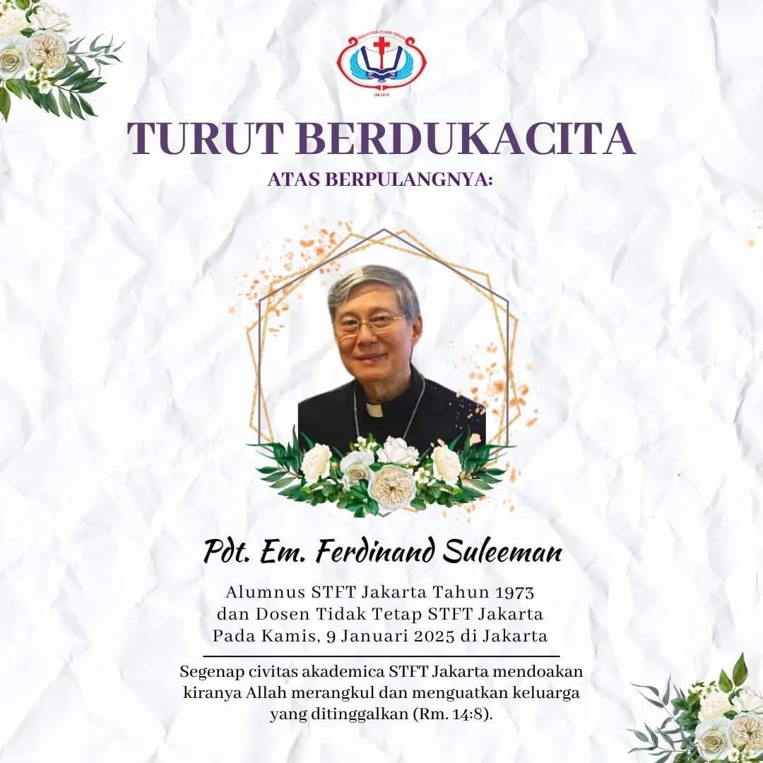 Berita Alumni/ae STFT Berduka: Berpulangnya Pdt. Em. Ferdinand Suleeman Tagged in : Pdt. Em. Ferdinand Suleeman STFT Berduka STFT Jakarta