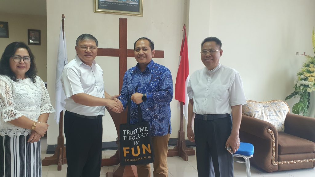 Pdt. Prof. Binsar J. Pakpahan (Ketua STFT Jakarta) menerima kunjungan Kepala Biro Institut Agama Kristen Negeri (IAKN) Palangkaraya untuk membicarakan