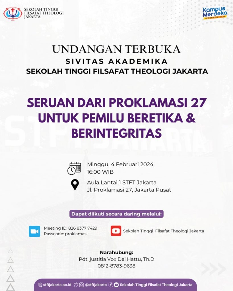 Minggu, 4 Februari 2024, pukul 16.00 WIB. Sivitas STFT Jakarta menyerukan pernyataan sikap untuk pemilihan umum 2024 yang berintegritas dan
