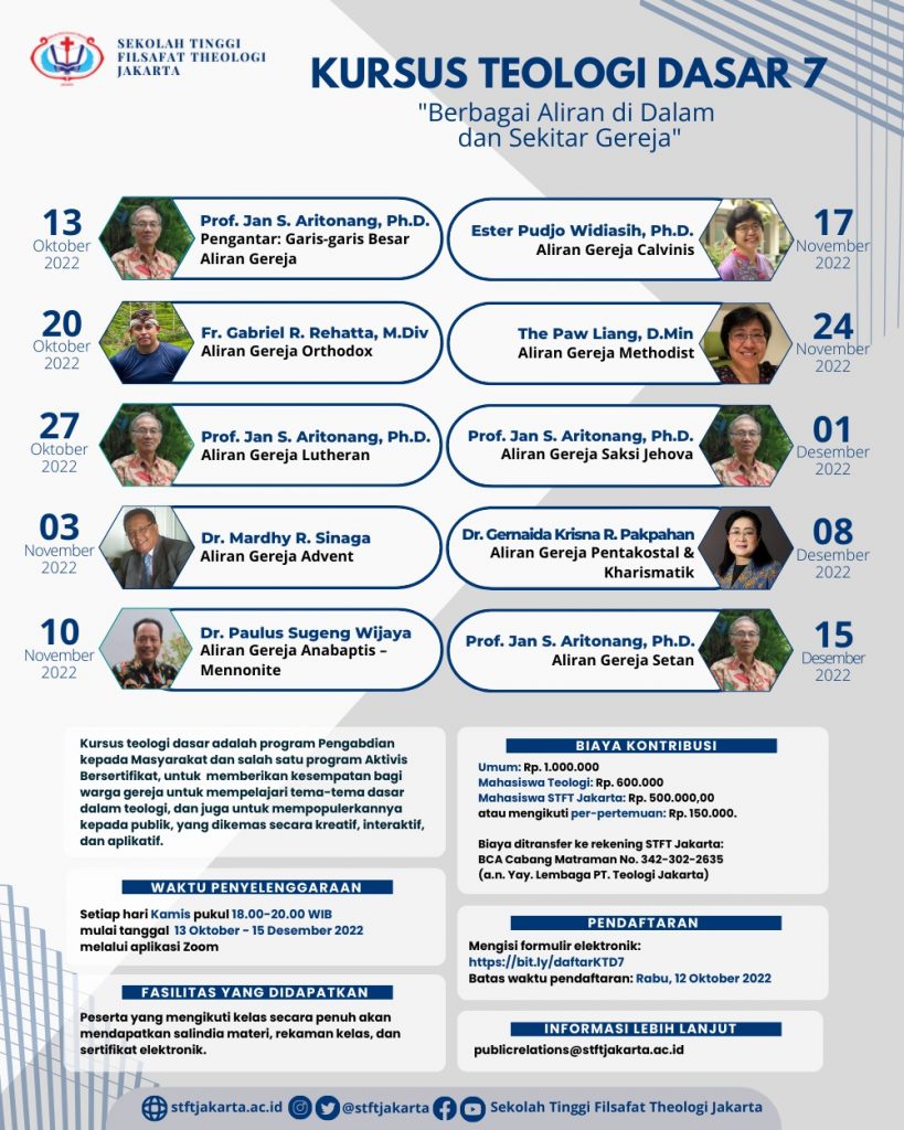 Sekolah Tinggi Filsafat Theologi Jakarta (STFT Jakarta) akan menyelenggarakan Kuliah Umum Bulanan “Kala dan Kalam" pada hari Senin, 24 Oktober