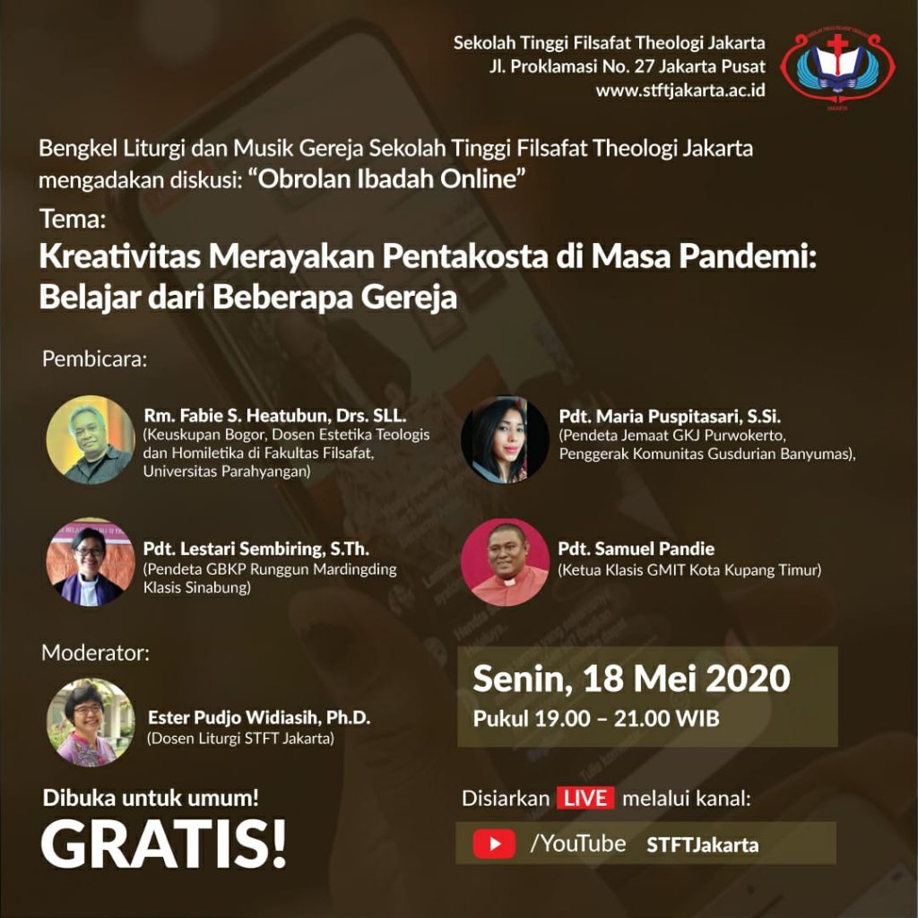 Bengkel Liturgi dan Musik Gereja Sekolah Tinggi Filsafat Theologi Jakarta mengadakan “Diskusi: Obrolan Ibadah Online” Tema: “Kreativitas Merayakan Pentakosta di